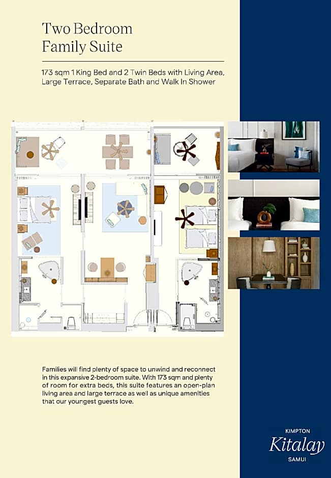 Kimpton Kitalay Samui bietet eine Auswahl an luxuriösen Zimmertypen, die auf die Bedürfnisse jedes Reisenden zugeschnitten sind. Vom Deluxe-Doppelzimmer bis zu den eleganten Suiten ist jede Unterkunft darauf ausgelegt, Komfort und Stil zu vermitteln. Genießen Sie atemberaubende Ausblicke entweder auf die üppigen Gärten oder auf den schimmernden Ozean durch die großen Fenster in jedem Zimmer. Die moderne Einrichtung und die durchdachten Details in jedem Raum schaffen ein friedliches Refugium, in dem sich Gäste während ihres Aufenthalts entspannen und neue Energie schöpfen können.